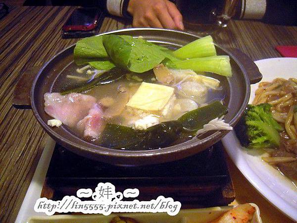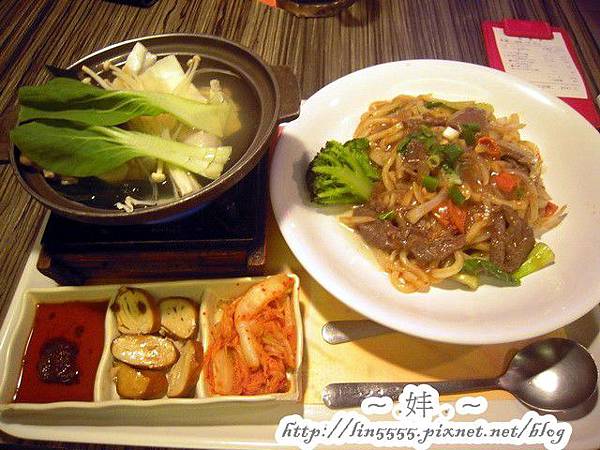 「沙茶牛肉炒烏龍麵」個人偏愛麵再硬一些,牛肉很嫩,味道很夠,嚼起來屬於黏黏勾勾。再搭配上旁邊那一小火鍋真的很飽喔!這一套加小菜195元。