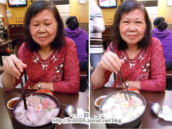 本來很專心在吃飯的妦媽,聽到妦要把照片放在網路上,突然正經為坐了起來。獅子座媽媽果真愛面子!!(←其實應該跟年記有關,星座無關啦!)