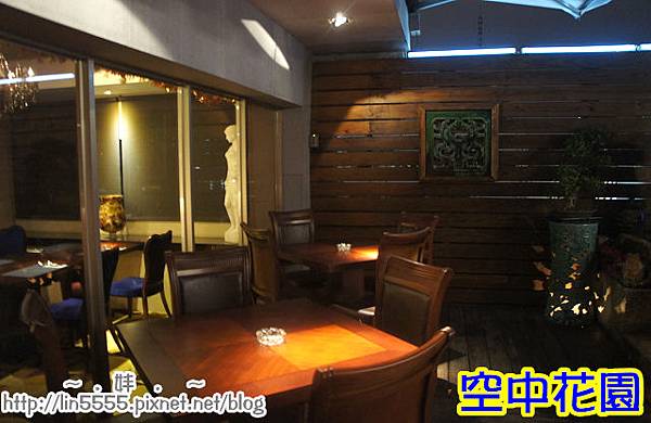 妦抵達現場才知道原來它位在11樓呢!特色便在於空中花園,高樓層花園讓人心曠神宜,可惜天公不作美,飄起細雨刮著不算小的風,要是今晚星空遼繞,想必情侶前往更是甜蜜增分。說真的,從推門從室內走向戶外那瞬間,心情跟著上升。