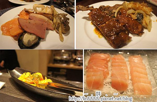 不過這道火烤牛肉倒是出現,現點現切。牛肉過大塊烹調不易,嘗起來有過老跡象,但至少讓我們看到團購圖片上的菜色還是有出現的。(也有部份出現囉,只是種類真的太少了!這大概是妦有始以來第一次吃Buffet吃到飽最少菜色的一次。)