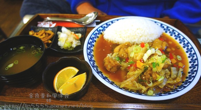 遇到食物就忘記爹娘忘記老婆忘記小孩的哈尼尼說:那妳只能吃半個呦!另外已經沒有早期網友說的「特餐」喔!我們點的是「親子丼、糖醋雞肉燴飯」。