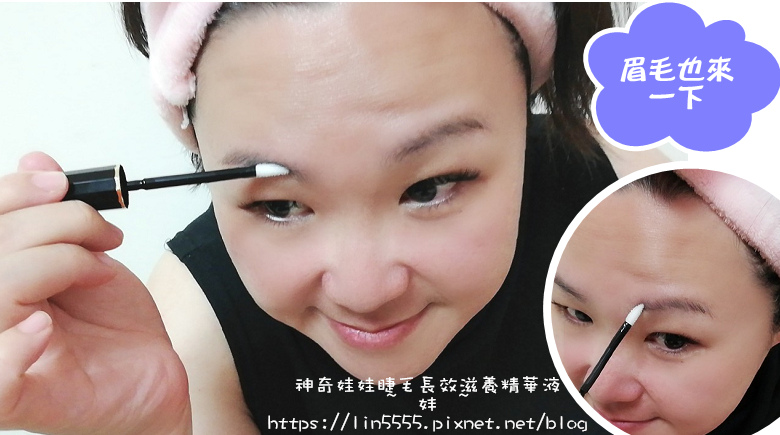 前頭的白色軟刷頭刷在睫毛上超舒服的。輕壓讓精華液滲入,別忘了要一起放電的下睫毛也要保養阿!最後,順手眉毛也一起帶!