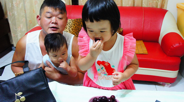 識貨的球球迫不及待沒形象來品嘗,連剛滿1歲的A嘟也知道好貨來了。一口咬下還能看到9R微愛心型狀,吃在嘴裡甜在心裡連眼睛都跟著享受。