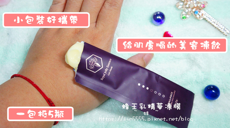 給肌膚喝的美容凍飲小包裝好攜帶才便於隨時隨身補!一包抵5瓶內含肌膚抗老明星蜂王漿水解蛋白、玻尿酸、鎖水磁石、保濕活性因子讓肌膚水嫩嫩,還有、還有皇室愛的蜂王漿,讓人邊敷邊覺得自己是貴妃阿!