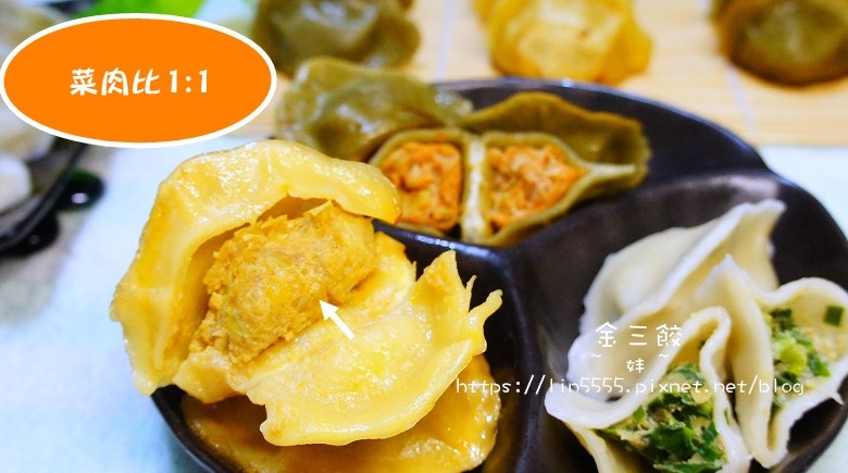 沒錯、沒錯!大童或是喜愛不同風味的人另種選擇,餃皮是紅蘿蔔汁染色也因此每次顏色會有不同,菜肉比1:1的好滋味讓不愛吃青菜的大人、小孩都能強迫中獎阿!