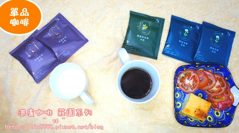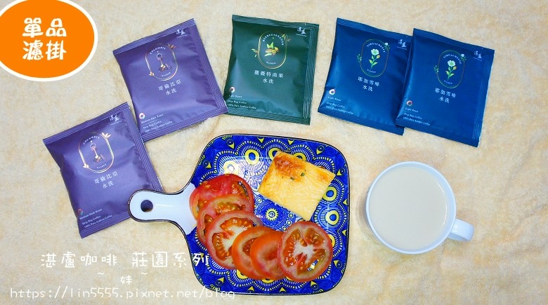 【湛盧咖啡】好喝的莊園系列,單品濾掛更是替年後開工加油打氣(嘿啦,全職媽媽對雙寶過年放肆玩,要收心更為困難)有堅果風味的薇薇特南果;還有哥倫比亞可是有黑巧克力內涵:耶加雪啡繽紛風味餘韻綿密。