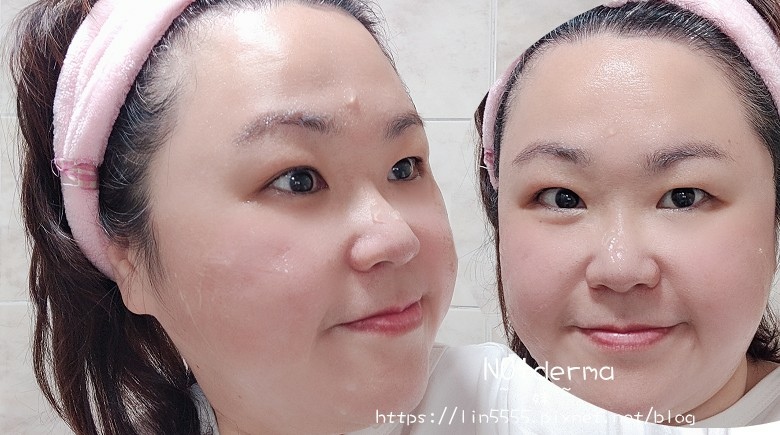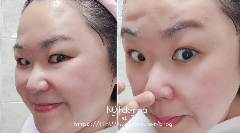 條狀擠壓設計,凝膠凍狀上頭還有金球閃耀。洗完臉後微擦拭,先從最容易躲藏的鼻角開始推起,逐步邁向雙唇角,接下來擴張到下顎,最令人驚奇下顎線竟然也搓出一堆白白小屑,簡直是「仙仙相連到天邊」