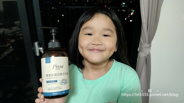 另外得配合她的小手,選用按壓瓶的PROSI 酵素抗菌衣物手洗精,兩種香氛,沁涼海洋:味道如同 polo sport;經典白茶:味道如同 雅頓白茶。